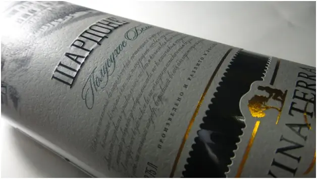 Специальный лак дает тактильный, объемный эффект, который выделяет ключевые области. Он выступает в качестве прозрачной или цветной рельефной поверхности на участках вашей этикетки, таких как логотип, название сорта или узор. Он также может быть очень эффективным при использовании в качестве супер глянцевой подсветки на матовом фоне. Это хороший способ увеличить насыщенность, глубину цвета выбранных элементов.